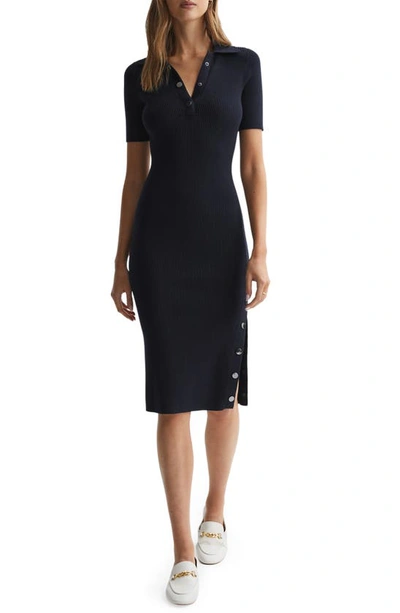 Sally V-neck Long-sleeve Wool And Cashmere-blend Midi Dress In Navy