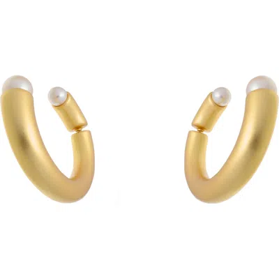 Anais Curve Faux Pearl Front/back Hoop Earrings In Brown