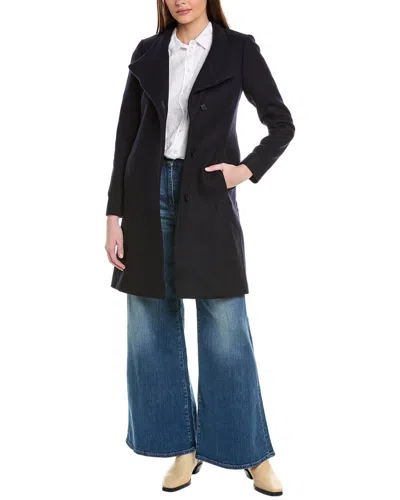 Mia Wool-blend Mid Length Coat In Blue