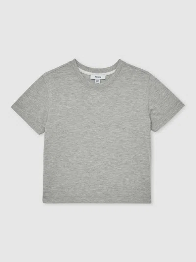 Grey Marl Cotton-blend Crew-neck T-shirt In Gray