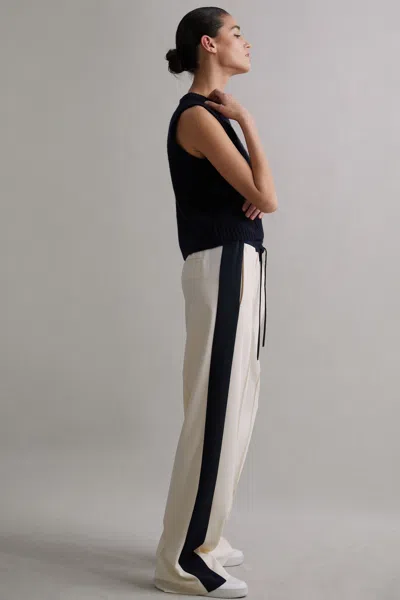 Cream May Wide Wide Leg Contrast Stripe Drawstring Trousers