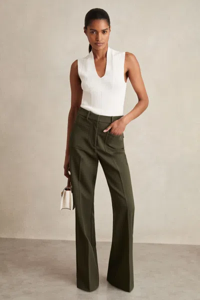Sage Wide Leg Elasticated Waist Trousers In Green