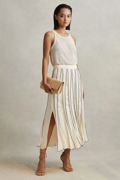 Navy/nude Ava Colourblock Pleated Midi Skirt