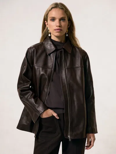 Womens Chocolate Brown Layla Zip-up Leather Jacket