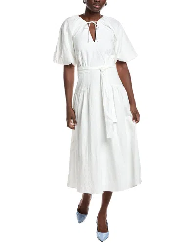 Alice Linen-blend Puff Sleeve Dress In White