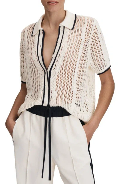 Erica Linen Stitch Interest Tipped Collared Top In White
