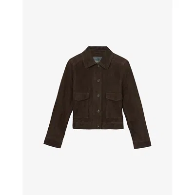Womens Tan Kiara Funnel-neck Suede Bomber Jacket In Brown