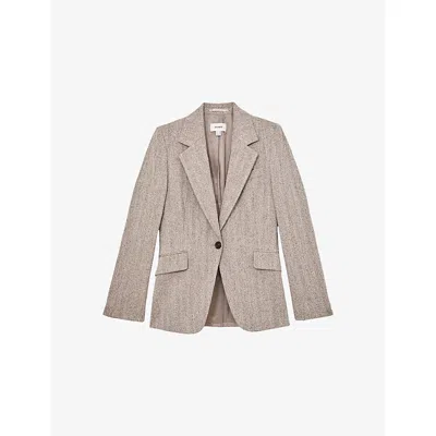 Womens Lexi Shawl-collar Button-embellished Stretch-knit Jumper Taupe In Brown