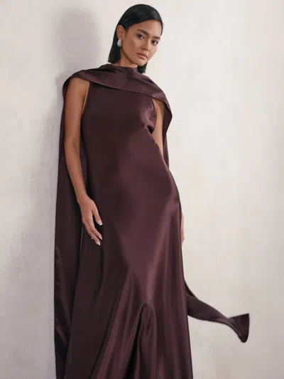 Burgundy Petite Satin Cape Maxi Dress In Purple