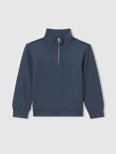 Kids' Oatmeal Melange Tempo Junior Slim Fit Knitted Half-zip Funnel Neck Jumper