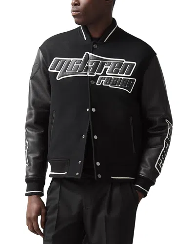 X Mclaren Circuit Leather Trim Wool Blend Bomber Jacket In Black