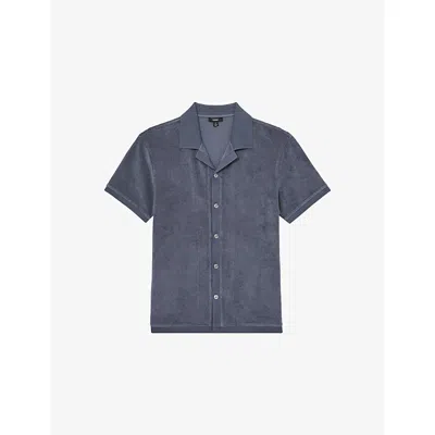 Mens Airforce Blue Eden Cuban-collar Short-sleeve Towelling Shirt Xl In Gray