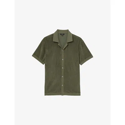 Mens Green Eden Cuban-collar Short-sleeve Towelling Shirt