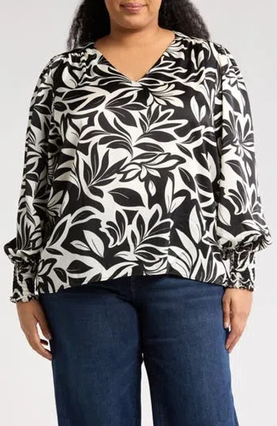 Leopard Smock Surplice Long Sleeve Top In Chocolate