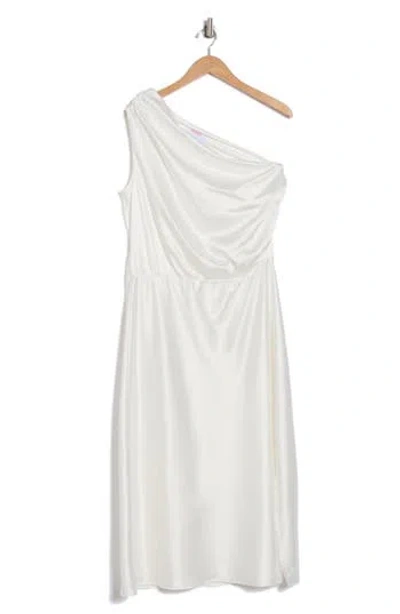 Short Sleeve Smocked Cotton Blend Maxi Dress In White