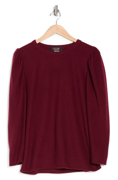 Semisheer Boat Neck Balloon Sleeve Top In Mauve