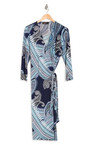 Floral Print V-neck Jersey Wrap Dress In Floral Navy