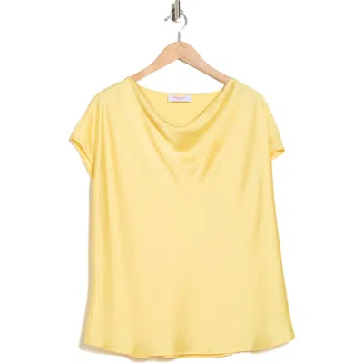 Cowl Neck Short Sleeve Satin Top In Yellow