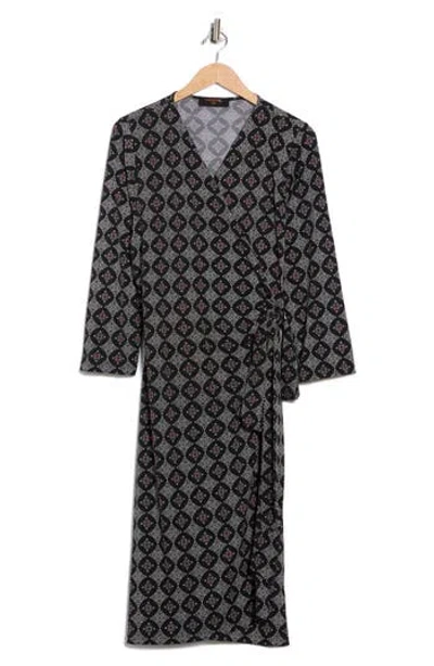 Geometric Long Sleeve Jersey Wrap Dress In Black