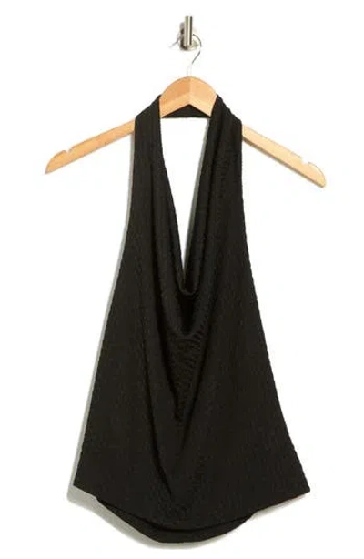 Cowl Neck Long Sleeve Brushed Knit Crop Top In Black