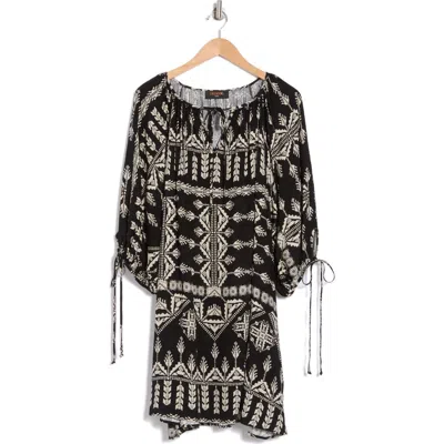Boho Long Sleeve Tunic Dress In Black