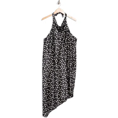 Polka Dot Asymmetric Hem Satin Halter Dress In Black