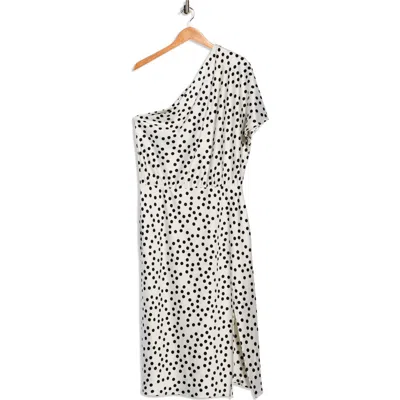 Polka Dot One-shoulder Satin Midi Dress In White