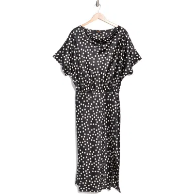 Polka Dot Short Sleeve Satin Midi Dress In Black