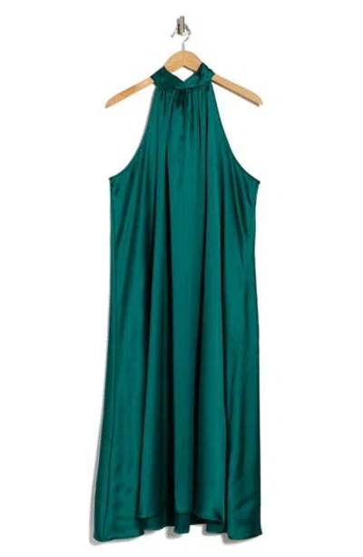 Satin Tie Neck Midi Dress In Blue