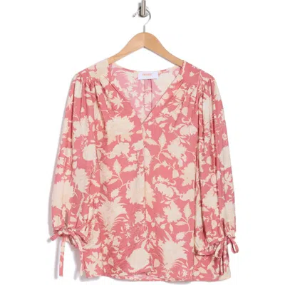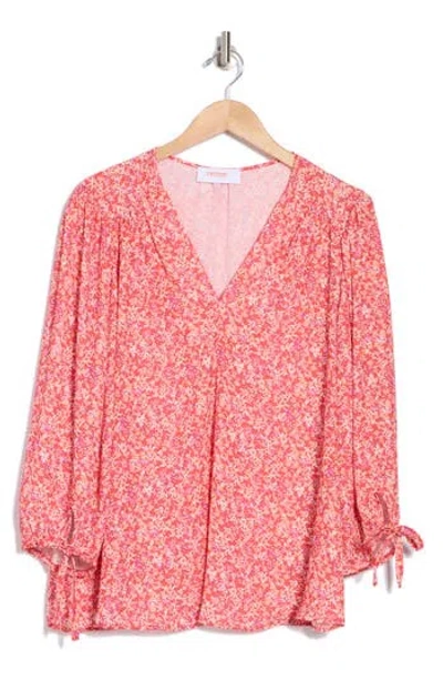 Ditsy Floral V-neck Long Sleeve Top In Red