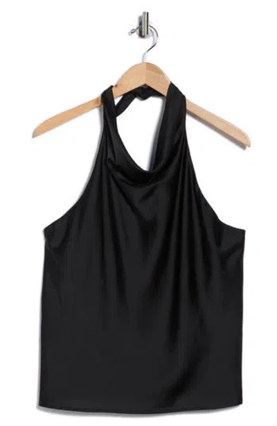 Cowl Neck Cap Sleeve Satin Top In Brown