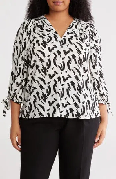 Animal Print Tie Neck Long Sleeve Top In Multi
