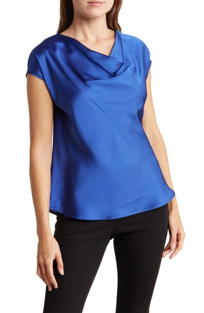Cowl Neck Cap Sleeve Satin Top In Royal Blue