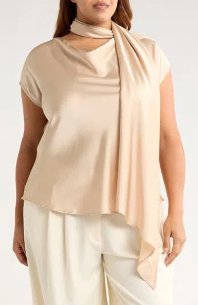 Cowl Neck Long Sleeve Satin Minidress In Neutral