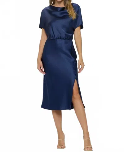Satin Bias Slip Dress With Slit In Chocolate In Gold