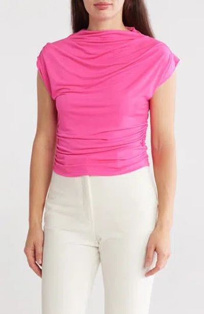 Cap Sleeve Ruched Crop Top In Fuchsia