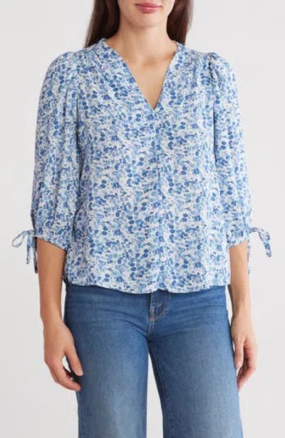 Ditsy Puff Sleeve Blouse In Blue