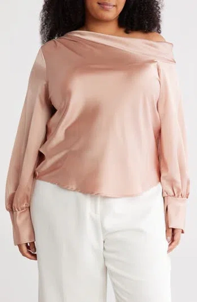 Cowl Off Shoulder Satin Top In Pink