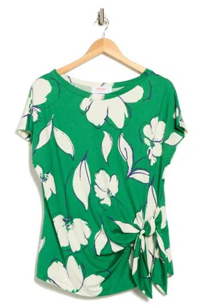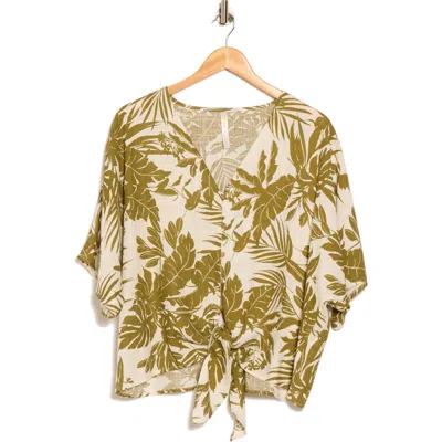 Tropical Short Sleeve Tie Front Button-up Top In Green