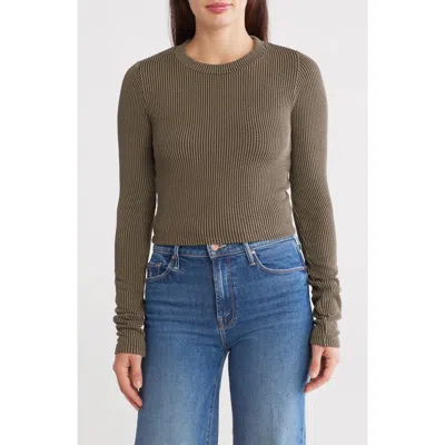 Square Neck Long Sleeve Ribbed Top In Ivory