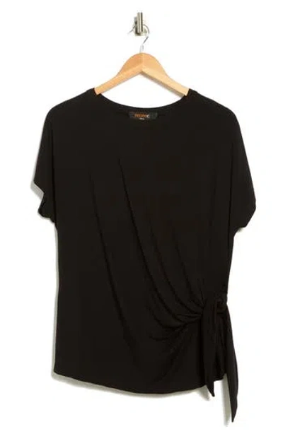 Solid Cowl Neck Cap Sleeve T-shirt In Black