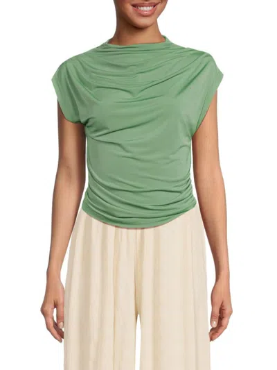 Solid Cowl Neck Cap Sleeve T-shirt In Green