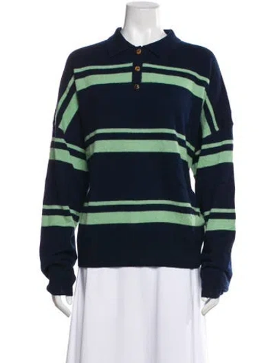Pre-owned Merino Wool V-neck Sweater In Blue