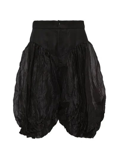 Elysia Balloon-shaped Cropped Linen Trousers In Black