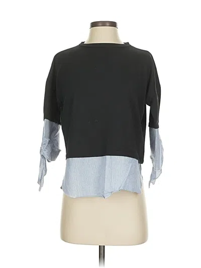 Pre-owned 3/4 Sleeve Top Gray Color Block Pattern Boatneck Tops