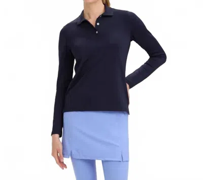Scallop Collar Long Sleeve Polo Shirt In Navy In Blue