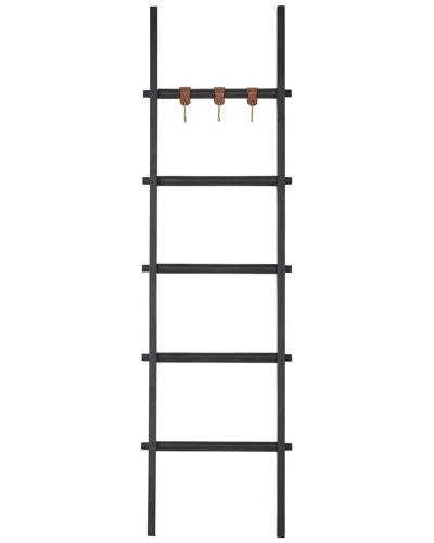 Ren-wil Mareva Decorative Ladder For Throws With Faux Leather Accent Hooks In Black