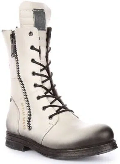 Pre-owned Evy Leather Military Vintage Womens Boot Off White Black Us 5 - 11 In Offwhiblk