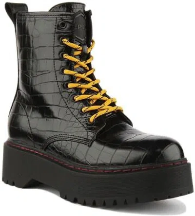 Pre-owned Womens Amity Lace Up Croc Platform Womens Boots In Black Us Size 3 - 8