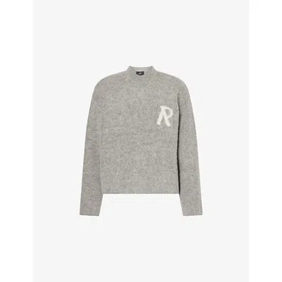 Mens Logo-print Crewneck Alpaca Blend Jumper Grey In Gray